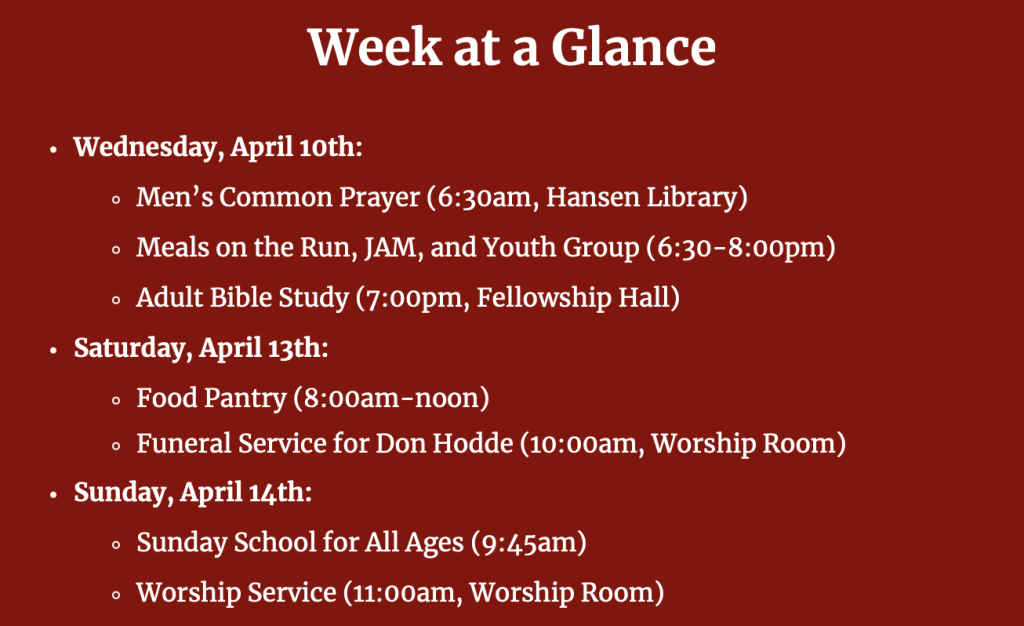 Christ is risen! (And I’ll just assume you responded, “he is risen, indeed!”). Easter day is behind us, but the Easter season is just beginning. Over the next few weeks, let’s do our best to live into the reality of Easter. Let’s proclaim the reality of resurrection with our words and our prayers. And let’s practice the reality of resurrection with our actions.