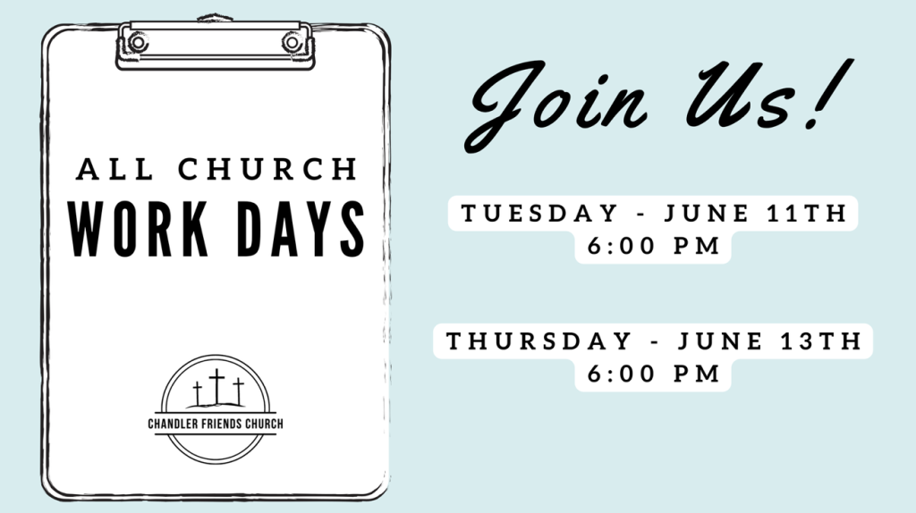 The Stewards Committee invites you to come to one or both of the upcoming work days. As you know, it takes lots of time and money to keep our buildings and grounds looking beautiful. Here are the projects we’re tackling next week:
